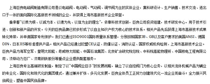 上海巨良電磁閥制造有限公司公司簡(jiǎn)介,關(guān)于上海巨良電磁閥制造有限公司