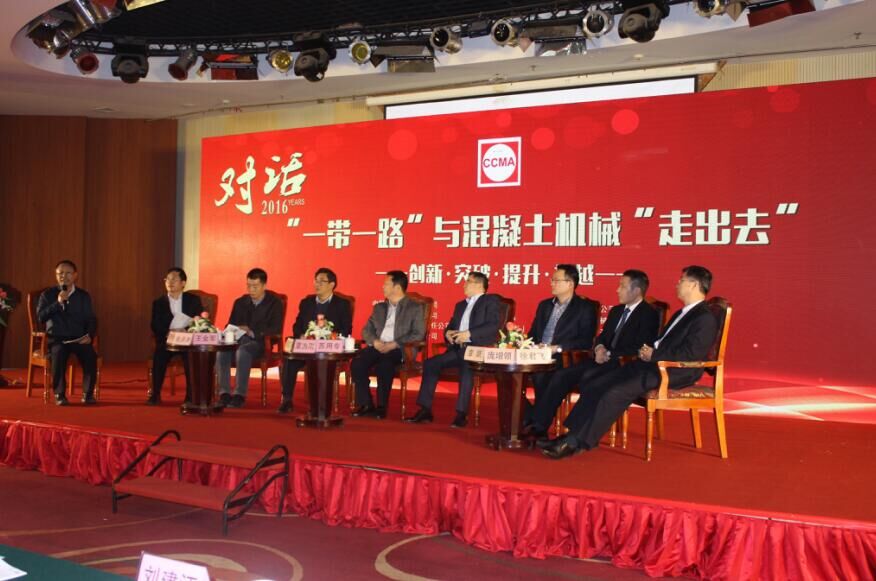 下午,由《建設機械技術與管理》雜志社社長周賢彪主持“一帶一路”與混凝土機械’走出去’對話,對話嘉賓分別為中國鐵建股份有限公司設備部部長覃為剛;中國冶金科工集團公司招標采購中心副主任錢洪濤;中國鐵路工程公司設備物資部副部長周高飛,中信建設股份有限公司采購部總經(jīng)理王金軍,中聯(lián)重科股份有限公司副總裁蘇用專,徐州徐工施維英機械有限公司總經(jīng)理助理章躍,山推建友機械股份有限公司副總經(jīng)理龐增領,青島新型建設機械有限公司總工徐君飛。