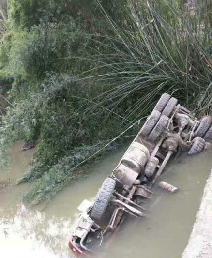 混凝土攪拌車栽入河中