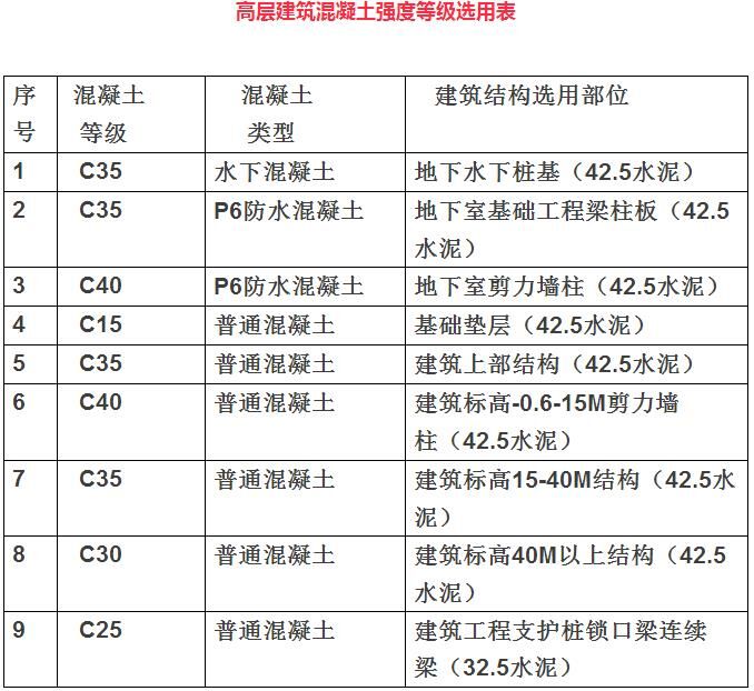 ⑤C50~C60——用于30層至60層以上高層建筑;