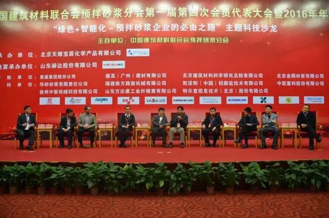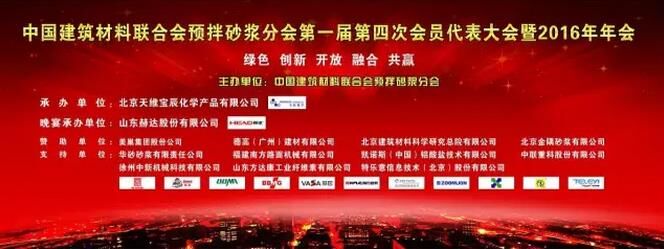 本次年會(huì),由北京天維寶辰化學(xué)產(chǎn)品有限公司承辦,并得到了美巢集團(tuán)股份公司、德高(廣州)建材有限公司、北京建筑材料科學(xué)研究總院有限公司、北京金隅砂漿有限公司的鼎力贊助,及華砂砂漿有限責(zé)任公司、福建南方路面機(jī)械有限公司、凱諾斯(中國(guó))鋁酸鹽技術(shù)有限公司、中聯(lián)重科股份有限公司、徐州中新機(jī)械科技有限公司、山東方達(dá)康工業(yè)纖維素有限公司、特樂(lè)意信息(技術(shù))股份有限公司的大力支持。而本次年會(huì)的2016年度中國(guó)預(yù)拌砂漿行業(yè)年會(huì)答謝晚宴,由山東赫達(dá)股份有限公司獨(dú)家冠名贊助。