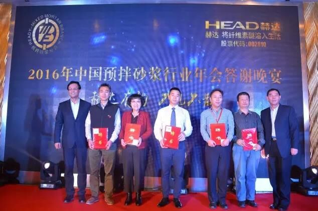 11月10日晚,由山東赫達(dá)股份有限公司承辦的“2016中國(guó)預(yù)拌砂漿行業(yè)年會(huì)答謝晚宴——赫達(dá)有約 不見(jiàn)不散”在科技感十足的《時(shí)空之夢(mèng)》舞蹈下正式拉開(kāi)帷幕。分會(huì)理事長(zhǎng)王肇嘉、山東赫達(dá)股份有限公司研發(fā)總監(jiān)李玉海分別代表主辦方和承辦方致辭。隨后,伴隨著悠揚(yáng)的樂(lè)曲及精彩熱烈的抽獎(jiǎng),中國(guó)預(yù)拌砂漿行業(yè)各領(lǐng)域精英再度聚首,共同為預(yù)拌砂漿事業(yè)舉杯歡慶,祝愿共同愿砂漿大業(yè)永遠(yuǎn)興旺蓬勃。晚宴同時(shí)還為2016年度中國(guó)預(yù)拌砂漿行業(yè)評(píng)比表彰中獲得優(yōu)秀通訊員的個(gè)人進(jìn)行了頒獎(jiǎng),并為預(yù)拌砂漿分會(huì)新任專(zhuān)家頒發(fā)了聘書(shū)。
