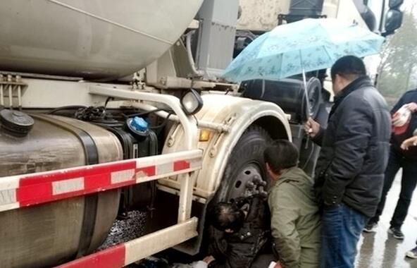 攪拌車與電瓶車相撞 騎手被壓慘不能睹