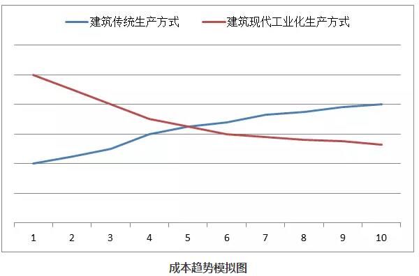 傳統生產方式的成本上升與工業(yè)現代化生產方式的成本下降,這是不可扭轉的發(fā)展趨勢!兩者終將在某個時間點相遇,當工業(yè)現代化生產方式下的成本低于傳統生產方式時,也是建筑工業(yè)現代化生產方式大面積取代建筑傳統生產方式的時間點。