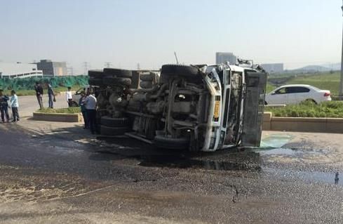 【事故】闖紅燈惹的禍?路口混凝土攪拌車與轎車相撞側(cè)翻