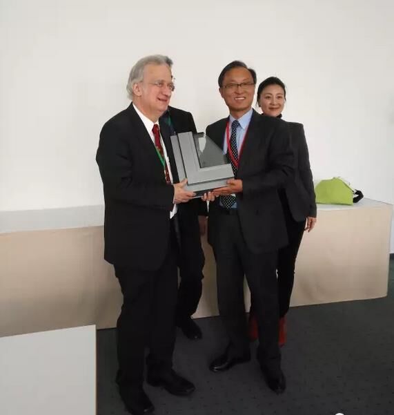 費(fèi)斯特教授與上海克絡(luò)蒂材料科技發(fā)展有限公司董事長(zhǎng)孫生根合影