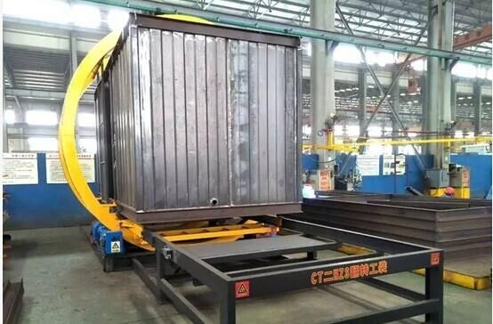 該工裝適用于HZS系列混凝土攪拌站所有水箱、外加劑箱、控制室生產(chǎn)過(guò)程中的翻轉(zhuǎn)焊接。工裝工件采用軌道輸送,四角螺旋定位,平穩(wěn)快速;可調(diào)節(jié)過(guò)渡軌道,可移動(dòng)踏板,方便快捷,安全可靠。