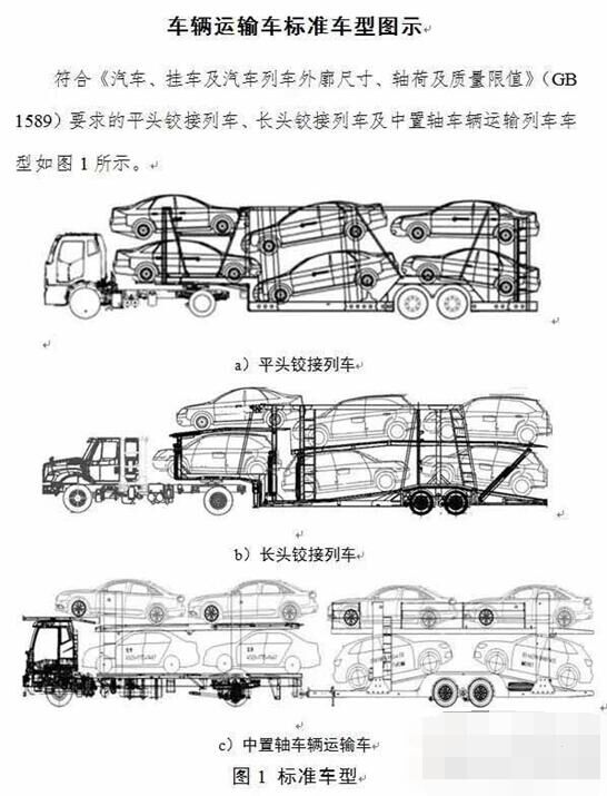 各地交通運(yùn)輸主管部門要加強(qiáng)對符合國家標(biāo)準(zhǔn)要求的平頭鉸接列車、長頭鉸接列車、中置軸車輛運(yùn)輸列車(車輛圖示見附件3)的宣傳,保障合規(guī)車輛運(yùn)輸車順利通行。上述車輛在通行高速公路時,各地交通運(yùn)輸執(zhí)法人員、收費(fèi)人員不得以未在申報(bào)系統(tǒng)內(nèi)申報(bào)等理由拒絕其駛?cè)敫咚俟坊蜻M(jìn)行處罰。對于中置軸車輛運(yùn)輸車,裝載高度參照載運(yùn)標(biāo)準(zhǔn)集裝箱的車輛執(zhí)行。