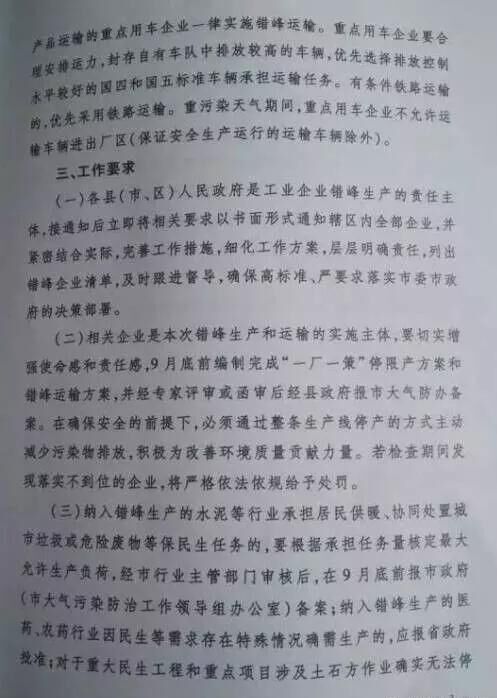 遼寧省錯(cuò)峰生產(chǎn)要求: