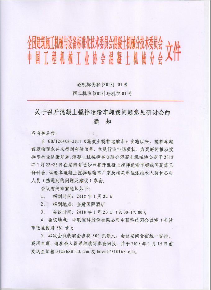 關(guān)于召開混凝土攪拌運(yùn)輸車超載問題意見研討會的通知