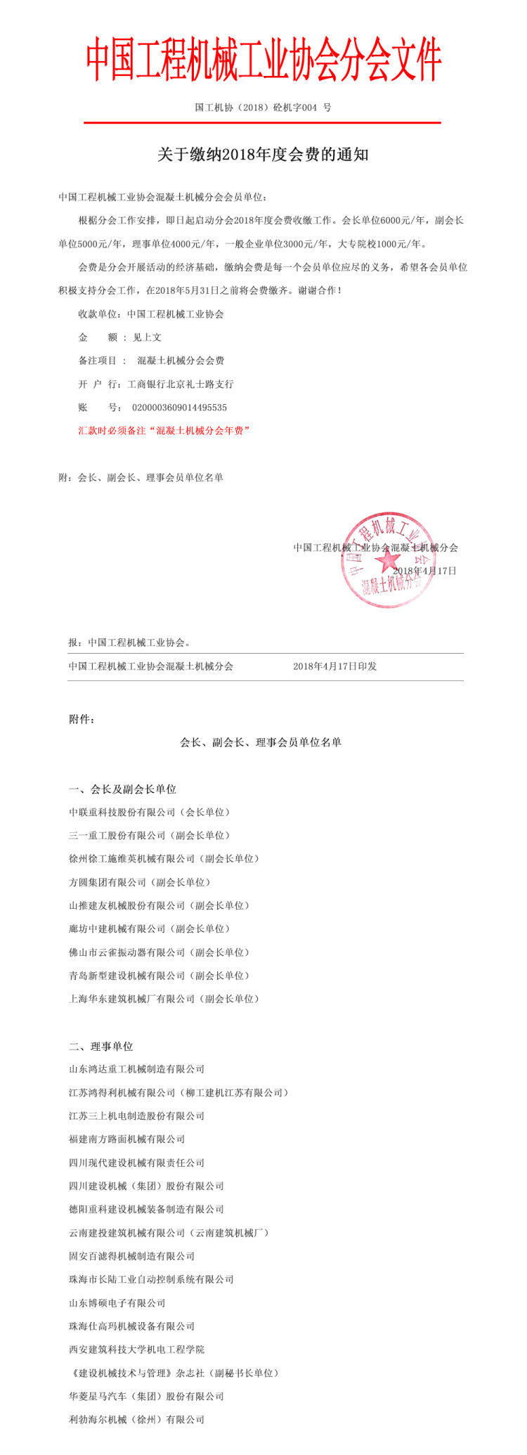 關于繳納2018年度會費文件通知