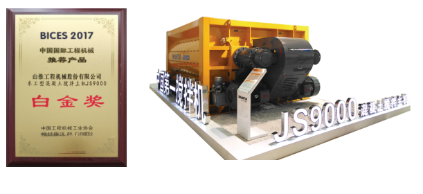 2017 BICES展上其憑借完美的外觀設(shè)計(jì)、無(wú)油軸端密封技術(shù)、雙料門(mén)結(jié)構(gòu)、軸端密封檢測(cè)技術(shù)、混凝土溫度及塌落度在線(xiàn)檢測(cè)裝置等多項(xiàng)核心專(zhuān)利技術(shù)獲得行業(yè)的認(rèn)同、用戶(hù)的認(rèn)可,相信在后續(xù)的使用中,JS9000水工型混凝土攪拌主機(jī)必將承擔(dān)重任,大放異彩!