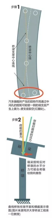 同濟(jì)大學(xué)橋梁工程系專家分析,曲線橋獨(dú)柱墩設(shè)計(jì)存在小概率隱患,國內(nèi)車況復(fù)雜或增大事故概率