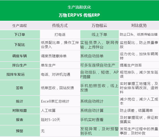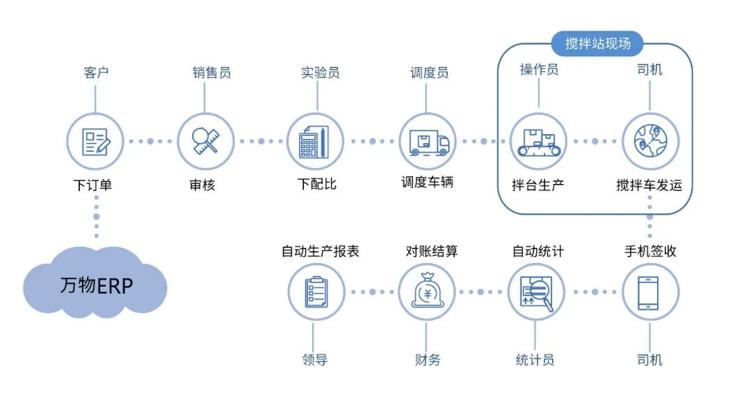 萬物ERP依托工業(yè)互聯(lián)網(wǎng)平臺技術(shù),將攪拌站大部分工作人員從攪拌站現(xiàn)場解放出來,在總部、在工地、在家中,不分白天黑夜,均能參與生產(chǎn)管理。