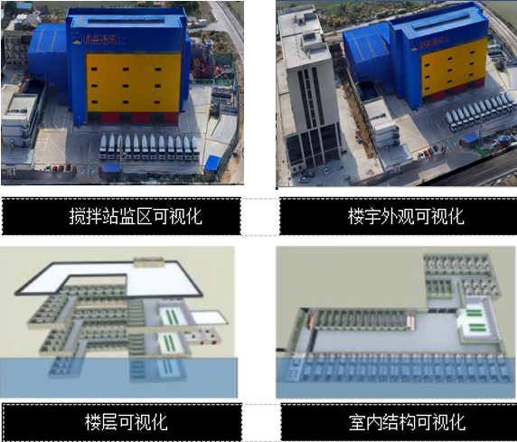 通過3D可視化技術(shù)手段,實(shí)現(xiàn)攪拌站全場景3D仿真可視瀏覽。場景構(gòu)建包括攪拌站監(jiān)區(qū)場景、樓宇外觀、樓層、室內(nèi)結(jié)構(gòu)、特定設(shè)備內(nèi)部等各層級場景的可視化。