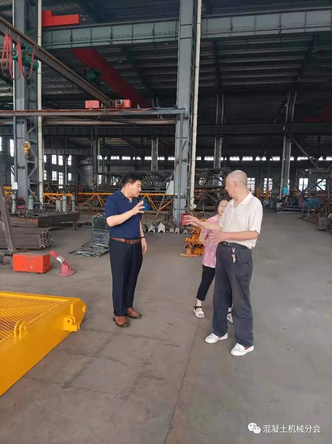 張工講到,周總外出學(xué)習(xí)趕不回來(lái),特別交代自己和林總接待好符會(huì)長(zhǎng)一行。在交流的過(guò)程中,張工也提到因?yàn)樾袠I(yè)現(xiàn)在經(jīng)營(yíng)比較困難,公司基本停止了混凝土攪拌設(shè)備的生產(chǎn),只有部分塔式起重機(jī)還在經(jīng)營(yíng),也陪同會(huì)長(zhǎng)在車(chē)間參觀了一圈,對(duì)實(shí)際的生產(chǎn)情況進(jìn)行了解。