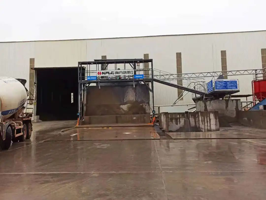 廠區(qū)一角,南方路機(jī)WCRE60設(shè)備一旁地上的漿水罐,具有自動排污清污功能,能有效降低漿水濃度,減輕了人工清理成本。設(shè)有定時攪拌器,定時啟動攪拌器,即可快速將漿水?dāng)嚢杈鶆?,漿水罐有自動排污功能,有效地保障了漿水使用后混凝土的安全性。