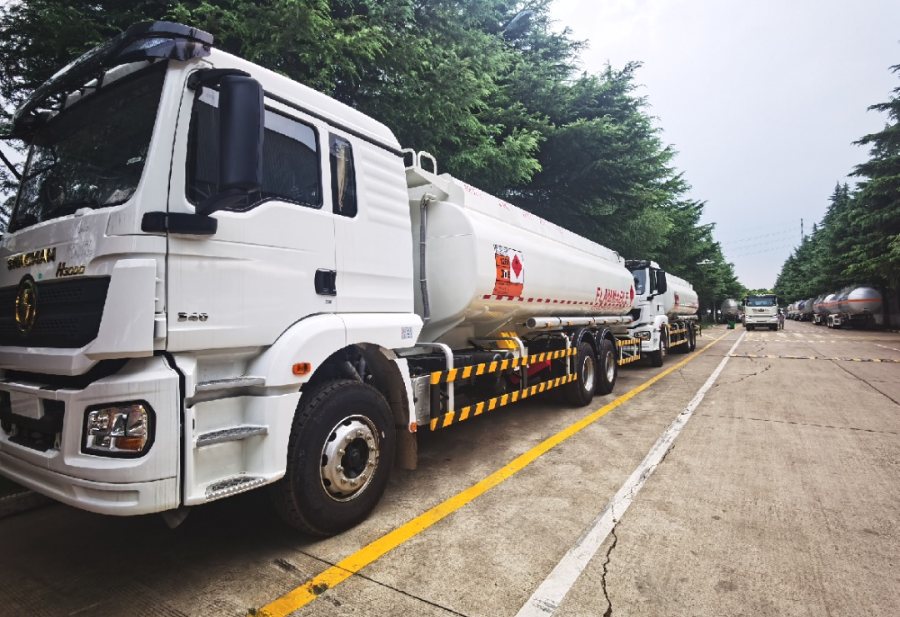 此次交付的液罐車(chē)罐體為多倉(cāng)式結(jié)構(gòu),相應(yīng)配置完全適應(yīng)客戶(hù)要求;材質(zhì)采用知名鋼廠專(zhuān)供的優(yōu)質(zhì)鋼材,獨(dú)特的輕量化設(shè)計(jì),相對(duì)于普通罐車(chē)自重更輕,容積更大,運(yùn)輸效率更高;