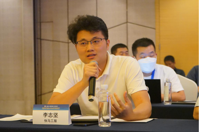 湖南快馬工服信息科技有限公司總經(jīng)理李志堅(jiān)對(duì)混凝土行業(yè)的攪拌站后市場(chǎng)服務(wù)情況和標(biāo)準(zhǔn)服務(wù)門(mén)店建立情況進(jìn)行了介紹。