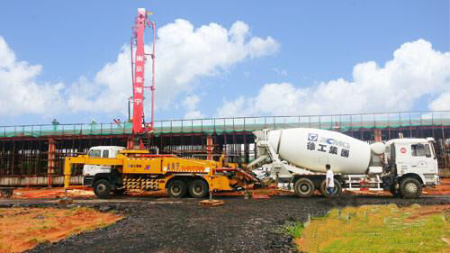 徐工46米泵車與12方混凝土攪拌車聯(lián)合施工