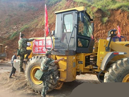 趕到災區(qū)的徐工救援隊指揮徐楠聯(lián)系上當?shù)卣筒筷?,在辦理好登記等相關(guān)手續(xù)后,積極請戰(zhàn)要求分派任務(wù),主動要求到最困難和最需設(shè)備的地方。中國武警部隊第三總隊領(lǐng)導經(jīng)過現(xiàn)場開會部署,決定臨時征用徐工一臺裝載機加入武警救援部隊。