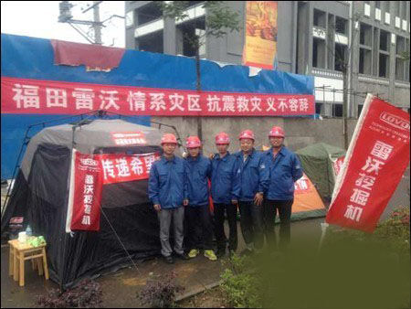 福田雷沃重工抗震救災(zāi)服務(wù)隊被編制在綿陽市工程機械搶險應(yīng)急大隊。4月22日,“福田雷沃重工抗震救災(zāi)服務(wù)隊”拿到了進入災(zāi)區(qū)的通行證,23號凌晨3點唐建和服務(wù)隊趕到災(zāi)區(qū),在當?shù)鼐仍块T的統(tǒng)一指揮下唐建便率領(lǐng)雷沃抗震救災(zāi)服務(wù)隊擔當起了平整蘆山縣安置房場地的重任,因為責任重大,唐建和隊員們肩上的擔子一刻也沒有松懈過?!澳茉缫蝗胀瓿蓤龅氐钠秸ぷ?,災(zāi)區(qū)人民就能早一日有個像樣的住所?!碧平ㄕf。