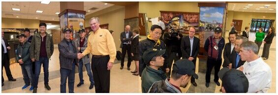 美國(guó)中部時(shí)間11月11日上午,Cat鋼鐵英雄爭(zhēng)霸賽盟主一行抵達(dá)卡特彼勒公司坐落于奧羅拉市的Cat裝載機(jī)工廠,展開為期兩天的卡特彼勒公司參觀訪問(wèn)。隨后,盟主們輾轉(zhuǎn)皮奧里亞市,重溫卡特彼勒百年輝煌之路,訪問(wèn)了生產(chǎn)推土機(jī)的卡特彼勒東皮奧里亞工廠和卡特彼勒的訪客中心,并在美國(guó)中部時(shí)間12日下午抵達(dá)愛德華茲演示與學(xué)習(xí)中心,通過(guò)遙控駕駛體驗(yàn)了Cat D11T大型推土機(jī)。傍晚時(shí)分,卡特彼勒董事長(zhǎng)兼首席執(zhí)行官道格拉斯?歐博赫曼與其他公司全球高層熱烈歡迎各位盟主的到來(lái),并認(rèn)真傾聽了他們對(duì)Cat產(chǎn)品設(shè)備的訴求。