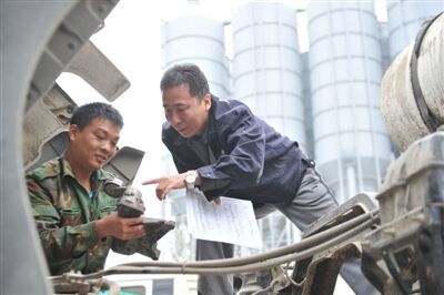 近日,記者來到位于西四環(huán)的混凝土攪拌站,走進維修車間,石新雨和他的徒弟正在車床前忙碌著。見到記者進來,石新雨的徒弟說,“是采訪‘牛哥’來的吧!他可是我們這兒的大能人。”石新雨把手里的活干完,指著外面來往的水泥灌車和鏟車對記者說,“這些車輛和攪拌站設(shè)備都是我們維修保養(yǎng),為了保障設(shè)備運行生產(chǎn),我們必須掌握一些技術(shù)?!彼弥掷飫偧庸ず玫囊粋€零件說,“這是水泥罐車上的一個易損件,經(jīng)過我們加工改造,可以節(jié)約50%成本?!弊哌M維修車間旁邊他的辦公室,隨處可見許多技術(shù)專業(yè)書籍,涉及到機械、液壓液力、電子控制、軟件應(yīng)用等方面的內(nèi)容。石新雨說,“這些書是我的‘專業(yè)技術(shù)老師’”。