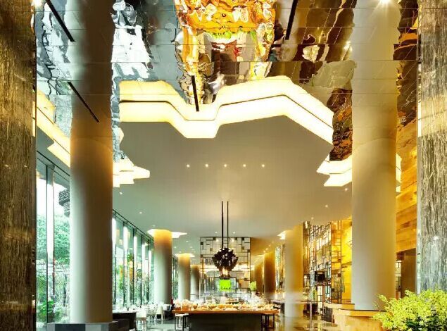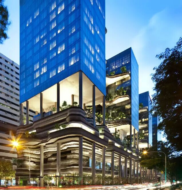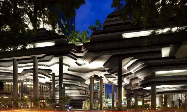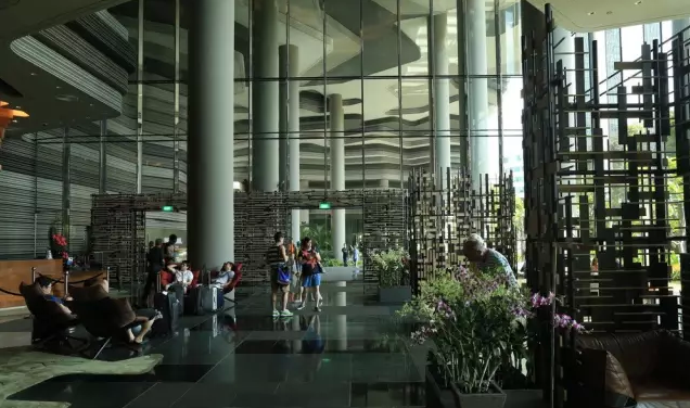 建筑流動(dòng)的幾何體給人一種高聳入云之感,塔樓每隔三層客房擁有懸挑的空中花園,上面種滿了熱帶植物,它已成為城市綠地的一部分,與鄰近公園融為一體。酒店擁有自我遮陽功能,懸挑而出的空中花園和相鄰的三座酒店客房大樓都能起到遮陽的作用,客房樓層立面采用低輻射玻璃。酒店頂樓的屋頂花園可將全城風(fēng)光一覽無余,獨(dú)家蘭花貴賓會(huì)所位處該層,并配有私人會(huì)議空間、圖書館和專用的貴賓會(huì)所門房。酒店五層設(shè)有可俯瞰城市的無邊界泳池,設(shè)備先進(jìn)的健身中心,特色的鳥籠休息涼亭及長達(dá)300米花園走道。
