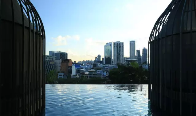 酒店位于其中心商業(yè)區(qū),是新加坡WOHA建筑事務(wù)所的杰作,負(fù)責(zé)景觀設(shè)計(jì)的為Tierra事務(wù)所。皮克林賓樂雅采用花園酒店理念,貫徹節(jié)能,已獲新加坡綠色建築最高榮譽(yù)BCA綠色建築白金獎(jiǎng),因其為首間使用太陽能酒店,獲得太陽能先鋒獎(jiǎng)。酒店樓高16層,12層高的塔樓坐落在5層高裙樓樓頂上,塔樓每隔三層懸挑一座空中花園。裙樓被波狀預(yù)制混凝土包圍,WOHA稱之為地形建筑、會(huì)呼吸的建筑。