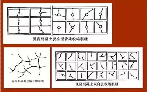 2塑性收縮(干縮)裂縫多發(fā)生在混凝土澆注后、還處于塑性狀態(tài)時,由于天氣炎熱、蒸發(fā)量大、大風或混凝土本身水化熱高等原因,而產(chǎn)生裂縫。