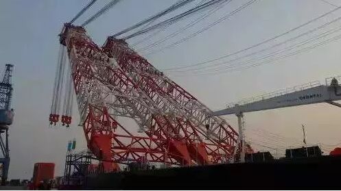 最大起重量為8000噸,起升高度達(dá)水面上120米,雙臂、雙塔(人字架)、八鉤的巨型浮吊,吊載8000噸時(shí)最大擺動(dòng)幅度可達(dá)舷外57米。