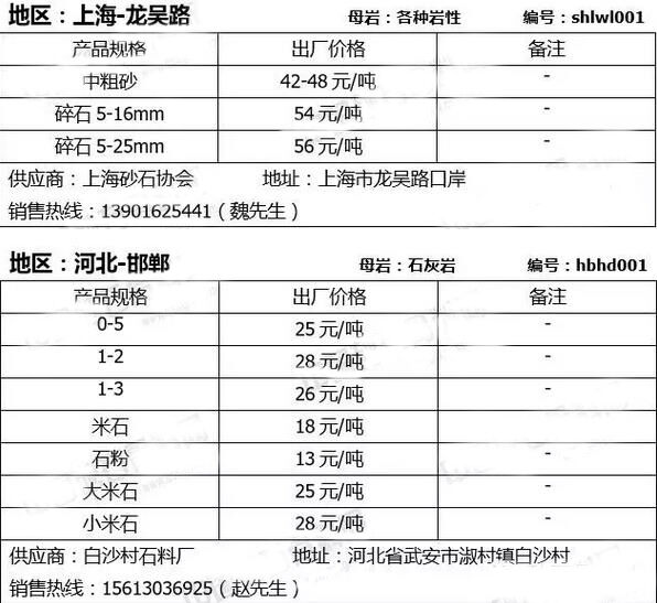 大宗砂石在線交易是“互聯(lián)網+砂石”生態(tài)圈重要一環(huán),今日小編給大家整理此份報價表旨在幫助廣大砂石需求商(攪拌站、工程建設單位、砂石貿易商等)以最快捷、最高效、最優(yōu)惠的方式來獲取優(yōu)質的砂石產品,同時也為誠信優(yōu)秀的砂石企業(yè)打開一扇創(chuàng)新之窗,讓好的企業(yè)得到良性發(fā)展,讓好的砂石產品獲得市場機會,砼商網將定期為市場提供各種規(guī)格的砂石產品及報價信息,敬請關注!