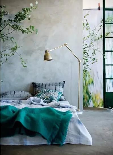 被水泥包裹的臥室,本來是很生硬冰冷的,綠植與床品的巧妙搭配,讓這個空間煥發(fā)出大自然的氣息。