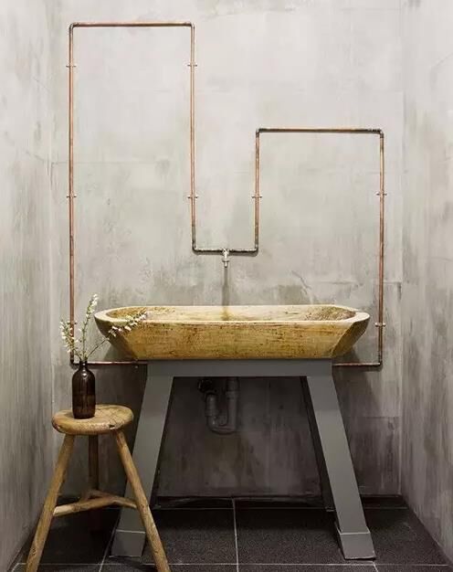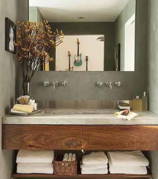 一眼就愛上這個洗漱空間,水泥與木質(zhì)竟然搭配地如此完美。