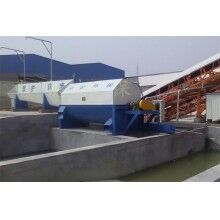 該系統(tǒng)主要由:攪拌車加水清洗裝置,溜槽輸送裝置,砂石漿水分離裝置,和泥漿水后處理裝置組成?;炷凛斔驮O(shè)備清洗后,將殘余混凝土排入溜槽中,在高壓水流沖擊下,經(jīng)溜槽進(jìn)入砂石分離機(jī),在不斷旋轉(zhuǎn)的分離機(jī)作用下,對(duì)混凝土進(jìn)行充分的清洗,同時(shí)將砂、石進(jìn)行分離,分離后的砂、石在導(dǎo)料葉片的作用下背向流動(dòng),再通過(guò)提升式出料口排出分離機(jī),分別堆放。清洗后的漿水從分離機(jī)的底部排出進(jìn)入沉淀池逐級(jí)沉淀后循環(huán)使用或進(jìn)入攪拌池回收利用。進(jìn)入攪拌池(一般情況2個(gè)攪拌池)的漿水為了防止沉淀凝固,需通過(guò)攪拌器的作用,攪拌器的工作為間歇式。分離出水泥漿在連續(xù)的攪拌器作用下,再通過(guò)高壓污水泵輸送到攪拌樓中待生產(chǎn)計(jì)量再利用。整個(gè)控制系統(tǒng)設(shè)有手動(dòng)和自動(dòng)控制,方便控制設(shè)置,整個(gè)系統(tǒng)運(yùn)行可靠,故障率低,維護(hù)量少等特點(diǎn)。