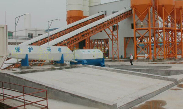 該系統(tǒng)主要由:攪拌車加水清洗裝置,溜槽輸送裝置,砂石漿水分離裝置,和泥漿水后處理裝置組成?;炷凛斔驮O(shè)備清洗后,將殘余混凝土排入溜槽中,在高壓水流沖擊下,經(jīng)溜槽進(jìn)入砂石分離機(jī),在不斷旋轉(zhuǎn)的分離機(jī)作用下,對混凝土進(jìn)行充分的清洗,同時(shí)將砂、石進(jìn)行分離,分離后的砂、石在導(dǎo)料葉片的作用下背向流動(dòng),再通過提升式出料口排出分離機(jī),分別堆放。清洗后的漿水從分離機(jī)的底部排出進(jìn)入沉淀池逐級沉淀后循環(huán)使用或進(jìn)入攪拌池回收利用。進(jìn)入攪拌池(一般情況2個(gè)攪拌池)的漿水為了防止沉淀凝固,需通過攪拌器的作用,攪拌器的工作為間歇式。分離出水泥漿在連續(xù)的攪拌器作用下,再通過高壓污水泵輸送到攪拌樓中待生產(chǎn)計(jì)量再利用。整個(gè)控制系統(tǒng)設(shè)有手動(dòng)和自動(dòng)控制,方便控制設(shè)置,整個(gè)系統(tǒng)運(yùn)行可靠,故障率低,維護(hù)量少等特點(diǎn)。