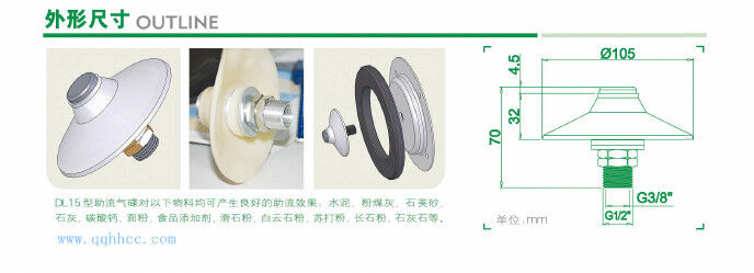 助流氣蝶前部是多孔金屬,外部通入的高壓空氣,經(jīng)過氣嘴后均勻分散在氣嘴周圍,促使粉料流動,達(dá)到助流效果。流化效果由氣嘴數(shù)量確定,不同的粉料及容器狀況需要不同數(shù)量的氣嘴。本產(chǎn)品具有安裝維護(hù)方便,價格低廉、流化效果明顯等突出優(yōu)點。 是水泥倉頂除塵器,攪拌站倉頂除塵器,以及水泥罐倉頂除塵器重要元件。