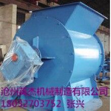 回轉(zhuǎn)卸料器的結(jié)構(gòu)是回轉(zhuǎn)葉輪、殼體、驅(qū)動裝置等,回轉(zhuǎn)葉輪上都焊有耐磨板從而提高了葉輪的使用壽命;回轉(zhuǎn)卸料器的入料口中心距和殼體中心線有一定的偏差,是為了適用于顆粒較大的物料的進(jìn)入。 回轉(zhuǎn)卸料器的殼體內(nèi)襯大都裝有抗磨層;葉輪是由兩端軸承支承,可以保證葉輪和殼體之間的間隙均勻;由于入料溫度較高,葉輪與殼體之間留有相應(yīng)的間隙。兩端密封是用石棉盤根密封、方式簡單、密封性好,容易操作及更換。