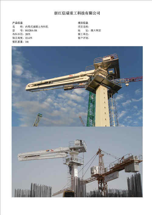 歸屬行業(yè):信瑞重工HG24A-3R樓面內(nèi)爬混凝土布料機(jī)