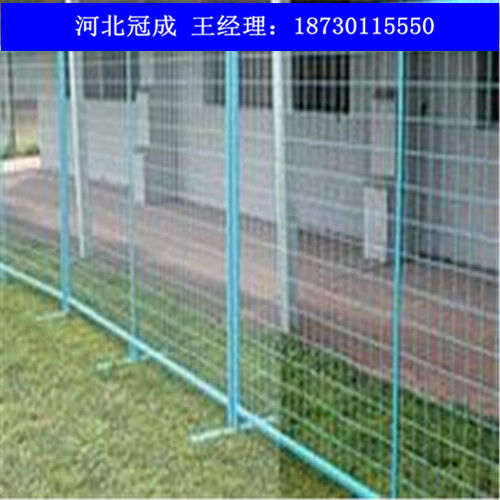 臨時(shí)護(hù)欄網(wǎng),又可以稱(chēng)為移動(dòng)圍欄,臨時(shí)隔離欄,移動(dòng)式安全圍欄網(wǎng)  臨時(shí)護(hù)欄分類(lèi)臨時(shí)護(hù)欄從工藝上來(lái)看可以分為兩種:1.焊接網(wǎng)臨時(shí)護(hù)欄;2.編織網(wǎng)臨時(shí)護(hù)欄。 1.焊接網(wǎng)臨時(shí)護(hù)欄網(wǎng)  主要規(guī)格如下 絲徑:3.6-6mm 孔徑:50X200mm 75X150mm 80X160mm 100X200mm等 網(wǎng)片高度:1.0-2.0m 網(wǎng)片寬度:2.0-3.0m 立柱:方形柱 圓形柱 桃形柱 新型防盜柱 表面處理:熱度鋅、 浸塑、 噴塑、 噴砂、 靜電噴涂等。 顏色:以綠色為主(黃色,藍(lán)色等)  以上規(guī)格,顏色等也可根據(jù)客戶(hù)需要加工定做。  2.編織網(wǎng)臨時(shí)護(hù)欄  主要規(guī)格如下 絲徑:1.5-4mm  孔徑:50X50mm 60X60mm 70X70mm 等  網(wǎng)片規(guī)格:1mX2m 1.5mX2m 2mX2.5m 2mx3m等?! ×⒅悍叫沃?圓形柱  表面處理:PVC包塑 熱鍍鋅  顏色:主要以綠色,藍(lán)色為主?! ∫陨弦?guī)格可根據(jù)客戶(hù)需求加工定做?! ∨R時(shí)護(hù)欄網(wǎng)是適用臨時(shí)隔離,臨時(shí)隔斷,臨時(shí)圈圍,是靈活性極強(qiáng)的產(chǎn)品。  臨時(shí)護(hù)欄網(wǎng)主要采用可拆接構(gòu)件將護(hù)欄主片與底座或防護(hù)柱進(jìn)行標(biāo)準(zhǔn)連接,等特定需要的時(shí)候可輕松拆除,進(jìn)行移動(dòng)安裝?!?