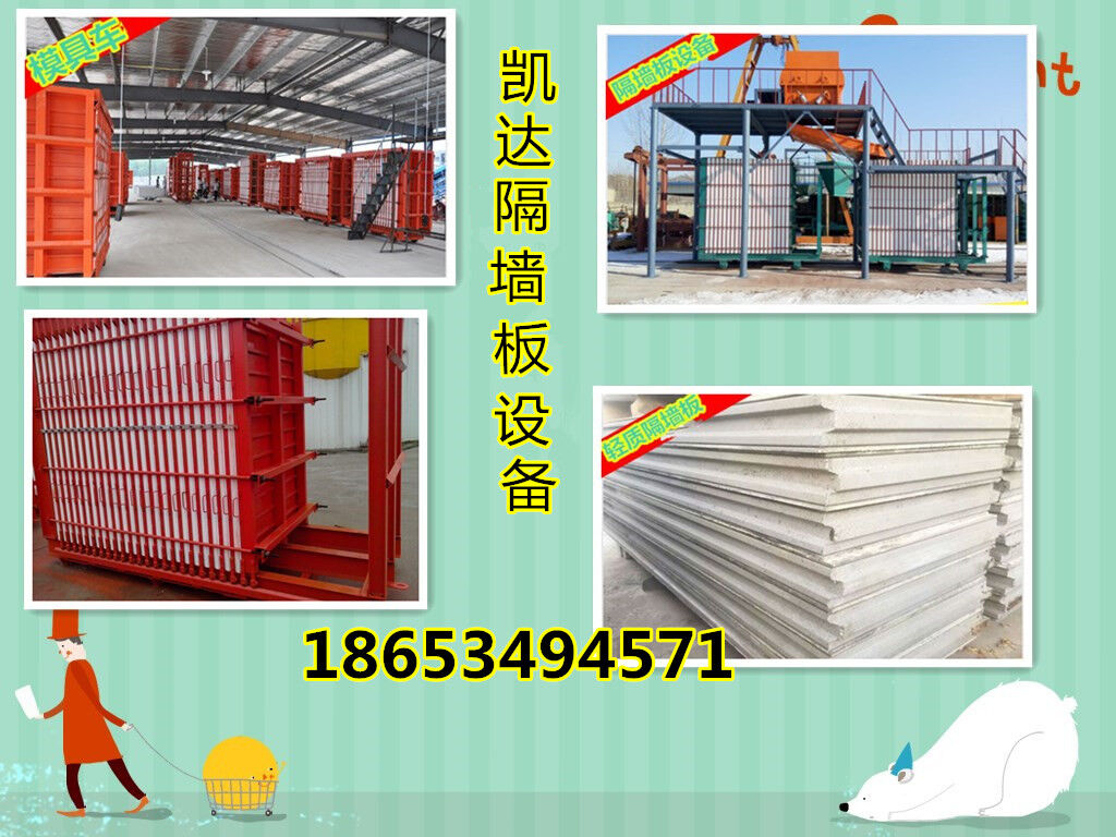 新型輕質(zhì)隔墻板設(shè)備由底盤總成、前立架、后立架、后壓板、拉桿、隔板、邊模、底模、轉(zhuǎn)換系統(tǒng)、電控系統(tǒng)組成,是目前市面上生產(chǎn)輕質(zhì)隔墻板先進通用實惠的生產(chǎn)設(shè)備(市面上現(xiàn)有未經(jīng)本公司授權(quán)的仿制產(chǎn)品),輕質(zhì)隔墻板設(shè)備【防火】復(fù)合內(nèi)墻墻板機出廠價低目前本公司在國內(nèi)已扶持合作建廠30余家,國外建廠20余家,設(shè)備的主要特征是:操作靈活、投資少、見效快、產(chǎn)量高。