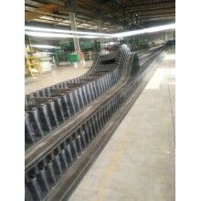 隔板:大傾角波狀擋邊輸送帶采用膠料與纖維復(fù)合材料混煉的工藝使得隔板挺性大,硬度高、增強(qiáng)了耐沖擊性,避免了其因受力較大而發(fā)生形變。