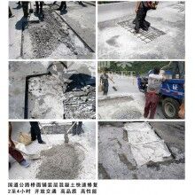 如果用普通水泥混凝土養(yǎng)護周期再少得一周,公路是重要的交通樞紐,不可能封路那么久。在反復(fù)對比分析下,四川阿壩自治州公路局決定采用一種新型材料—搶修寶快速修補料修復(fù)病害。這種快速搶修水泥在保證質(zhì)量的同時,可以快速通車。30分鐘凝固,2-4小時通行,2小時強度可達到C30,施工工藝簡單,好掌握,修補效果好,已經(jīng)在全國范圍內(nèi)獲得了廣泛的運用。
