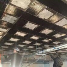 ·粘貼碳纖維片材,按設(shè)計要求裁剪碳纖維布。根據(jù)比例稱取所需膠量,進(jìn)行充分混合。將混合好的浸漬膠均勻涂抹于所耍粘貼的部位并粘貼碳纖維布。在搭接、拐角處可適當(dāng)多涂些膠。用光滑的滾筒順纖堆方向多次滾壓.?dāng)D除氣泡使JGN802浸漬膠充分浸透碳纖維布.滾壓時不得損傷碳纖維布.多層粘貼重復(fù)上述步驟.在最后一層碳纖維布的表面均勻涂抹一層浸漬膠。