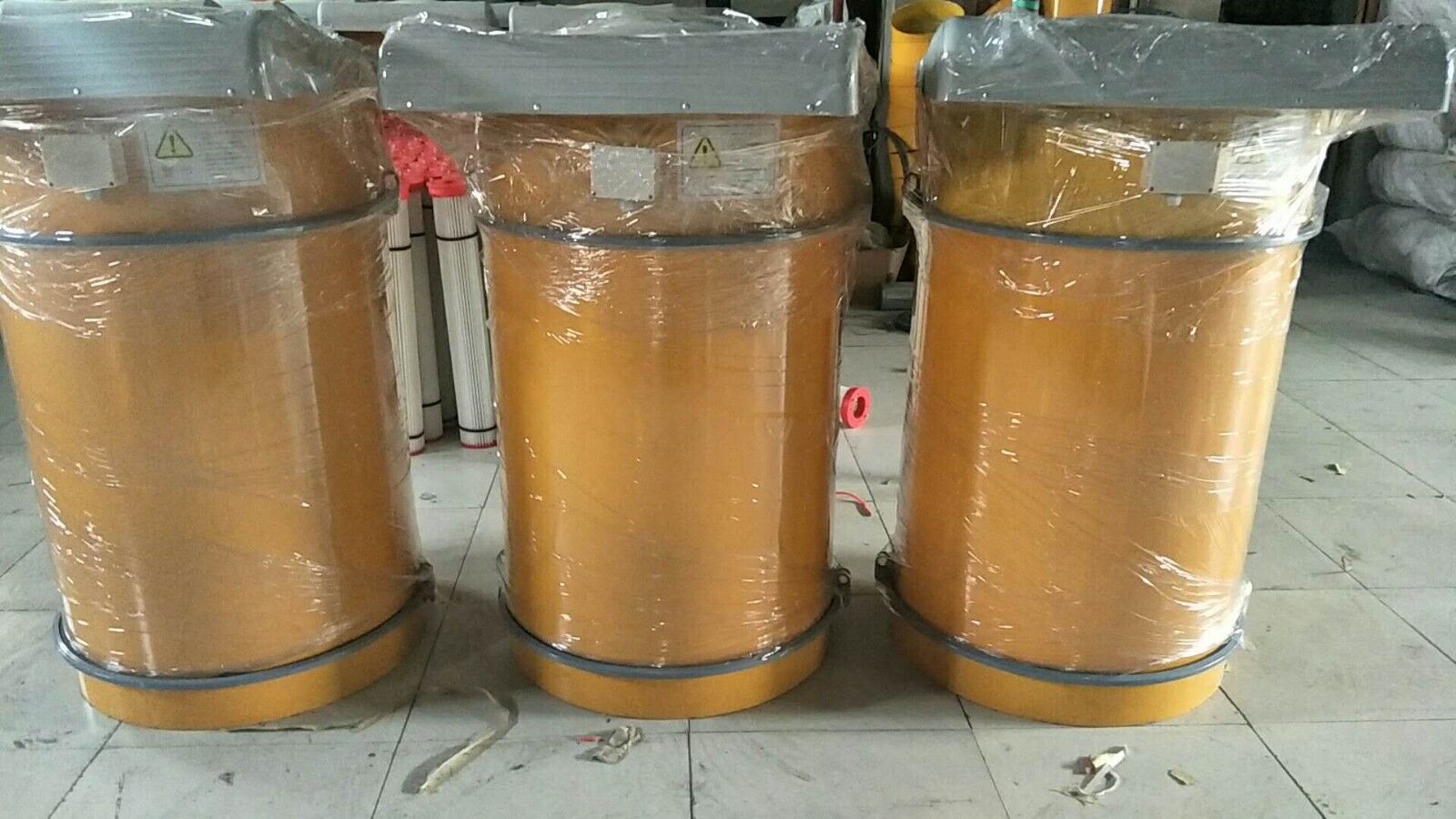 水泥倉頂除塵器一般由振動電機(jī),支架,防雨帽,上部筒箱,電器盒,振動盒,濾芯,密封筒箱,防護(hù)網(wǎng),連接夾子,焊接法蘭,密封墊等組成。