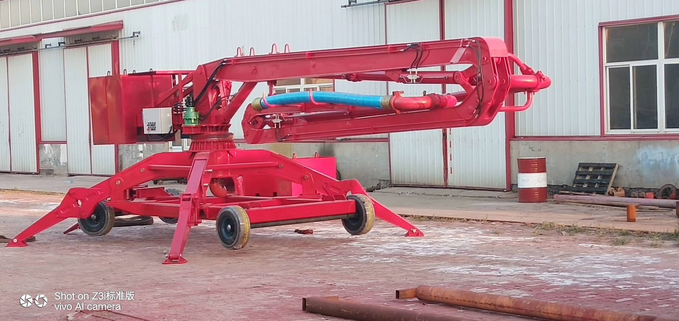 布料機(jī)是為了擴(kuò)大混凝土澆注范圍,提高泵送施工機(jī)械化水平而開(kāi)發(fā)研制的新產(chǎn)品。是混凝土輸送泵的配套設(shè)備,與混凝土輸送泵連接,擴(kuò)大了混凝土泵送范圍。有效的解決了墻體澆注布料的難題,對(duì)提高施工效率,減輕勞動(dòng)強(qiáng)度,發(fā)揮了重要作用。