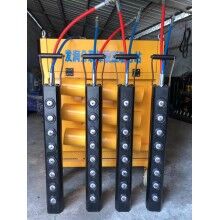 根據(jù)施工的要求我們研發(fā)出了兩款設(shè)備進行不同工程的巖石破碎,大型劈裂機FR-5600型重1.3噸,長度為3米。使用時需要用鉤機吊起來進行巖石。配合履帶式鉆機開采效率可達幾百方甚至更多看現(xiàn)場操作。人工手持式巖石機分為3個型號,分別為150 250、350因其操作性高,可在狹小空間操作,分別適用于礦洞掘進、豎井開挖、混凝土破碎、露天開采等工程。