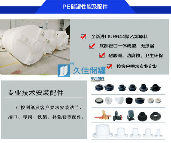 久佳新型20000l液堿pe塑料罐 鹽酸儲(chǔ)存罐材質(zhì) 加厚耐酸堿鹽pe罐具備獨(dú)特的外形,不同于其他常規(guī)儲(chǔ)罐,適合存放稀硫酸、任何濃度鹽酸、任何濃度次氯酸鈉、液堿、漂白水、氫氧化鈉、三氯化鐵、酸堿鹽溶液、電鍍廢水、工業(yè)廢水、污水、純水、聚羧酸減水劑、外加劑等一系列危險(xiǎn)化學(xué)品,PE儲(chǔ)罐使用韓國進(jìn)口的原料LLDPE為加強(qiáng)型,性能耐酸耐堿,不易老化,是環(huán)保、水處理、危廢處理、化工、食品、釀造、印染、建材、石英砂行業(yè)的選擇。主要產(chǎn)品有塑料儲(chǔ)罐、PE水箱、pe儲(chǔ)罐、鹽酸儲(chǔ)罐、漂白水儲(chǔ)罐、次氯酸鈉儲(chǔ)罐、液堿儲(chǔ)罐、氫氧化鈉儲(chǔ)罐、雙氧水儲(chǔ)罐、三氯化鐵儲(chǔ)罐、稀硫酸儲(chǔ)罐、減水劑儲(chǔ)罐、外加劑儲(chǔ)罐、污水儲(chǔ)罐、原水儲(chǔ)罐、廢水儲(chǔ)罐、純水儲(chǔ)罐等等。具體介質(zhì)及產(chǎn)品請(qǐng)來電咨詢。