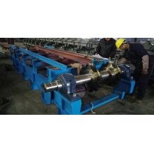 通過分析研究上述問題,結(jié)合國(guó)內(nèi)外給料機(jī)使用情況,重新設(shè)計(jì)制作了一臺(tái)新型給料機(jī),主要特點(diǎn)是:采用板式給料機(jī)連續(xù)給料;板式給料機(jī)料板采用雙圓弧、節(jié)點(diǎn)重合的方式,解決了漏料問題;板式給料機(jī)安裝角度為18°,可使物料緩慢分散跌落到皮帶機(jī)上;撥料棍采用逆物料方向旋轉(zhuǎn),以控制物料層的厚度;料斗設(shè)計(jì)采用漸開式,解決了膨料問題;電機(jī)采用變頻控制,可控制出料速度。經(jīng)過三個(gè)多月的的現(xiàn)場(chǎng)使用,證明能夠完成勻料,效果較好。